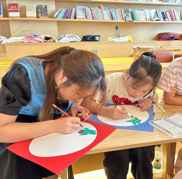 “丹荔繪夏”主題繪畫(huà)活動(dòng),作為雙職工家庭托管服務(wù)的常規(guī)環(huán)節(jié),面向19名6-12歲兒童開(kāi)展,旨在通過(guò)藝術(shù)體驗(yàn)豐富假期生活,緩解家長(zhǎng)看護(hù)壓力。活動(dòng)以嶺南特色水果——荔枝為創(chuàng)作主題,融合自然觀(guān)察與藝術(shù)表達(dá),引導(dǎo)孩子們?cè)谏逝c線(xiàn)條中感受夏日之美,釋放創(chuàng)造力。活動(dòng)現(xiàn)場(chǎng),身著藍(lán)色背心的志愿者早早布置好畫(huà)桌,為每位孩子準(zhǔn)備了畫(huà)紙、彩色鉛筆、水彩筆、調(diào)色盤(pán)等基礎(chǔ)美術(shù)工具。教室前方的投影儀清晰展示著精心挑選的荔枝圖像樣本,包括枝葉的脈絡(luò)結(jié)構(gòu)、果實(shí)的飽滿(mǎn)形態(tài)、光影的明暗變化等細(xì)節(jié),幫助孩子們建立對(duì)寫(xiě)生對(duì)象的直觀(guān)認(rèn)知。在正式動(dòng)筆前,志愿者以生動(dòng)親切的語(yǔ)言介紹了荔枝的生長(zhǎng)特點(diǎn)與文化寓意,并現(xiàn)場(chǎng)示范如何進(jìn)行輪廓勾勒、形狀布局和色彩搭配。從枝干的走向到果粒的排列,從綠色漸變到紅黃過(guò)渡,孩子們聚精會(huì)神地觀(guān)察,不時(shí)發(fā)出贊嘆。“原來(lái)一片葉子也有這么多顏色!”一位小朋友在調(diào)色時(shí)驚喜地發(fā)現(xiàn)。隨后,孩子們?cè)谥驹刚叩囊龑?dǎo)下開(kāi)啟獨(dú)立創(chuàng)作。他們或?qū)W⒐淳(xiàn),或大膽上色,將自己眼中的“夏日荔枝”躍然紙上。有的畫(huà)出沉甸甸的果實(shí)壓彎了枝頭,有的添加了蝴蝶與陽(yáng)光,描繪出一幅幅充滿(mǎn)童趣的“荔枝童話(huà)”。創(chuàng)作過(guò)程中,志愿者穿梭于孩子們之間,針對(duì)線(xiàn)條不流暢、比例失調(diào)、色彩搭配單一等問(wèn)題,提供一對(duì)一的耐心指導(dǎo),鼓勵(lì)孩子們勇于嘗試、表達(dá)自我。該環(huán)節(jié)聚焦基礎(chǔ)藝術(shù)能力的培養(yǎng),涵蓋觀(guān)察力、手部控制力、色彩感知與空間布局等多方面訓(xùn)練,有效提升了兒童的專(zhuān)注力與審美素養(yǎng)。許多孩子在完成作品后主動(dòng)分享創(chuàng)作靈感,現(xiàn)場(chǎng)洋溢著成就感與藝術(shù)氛圍。