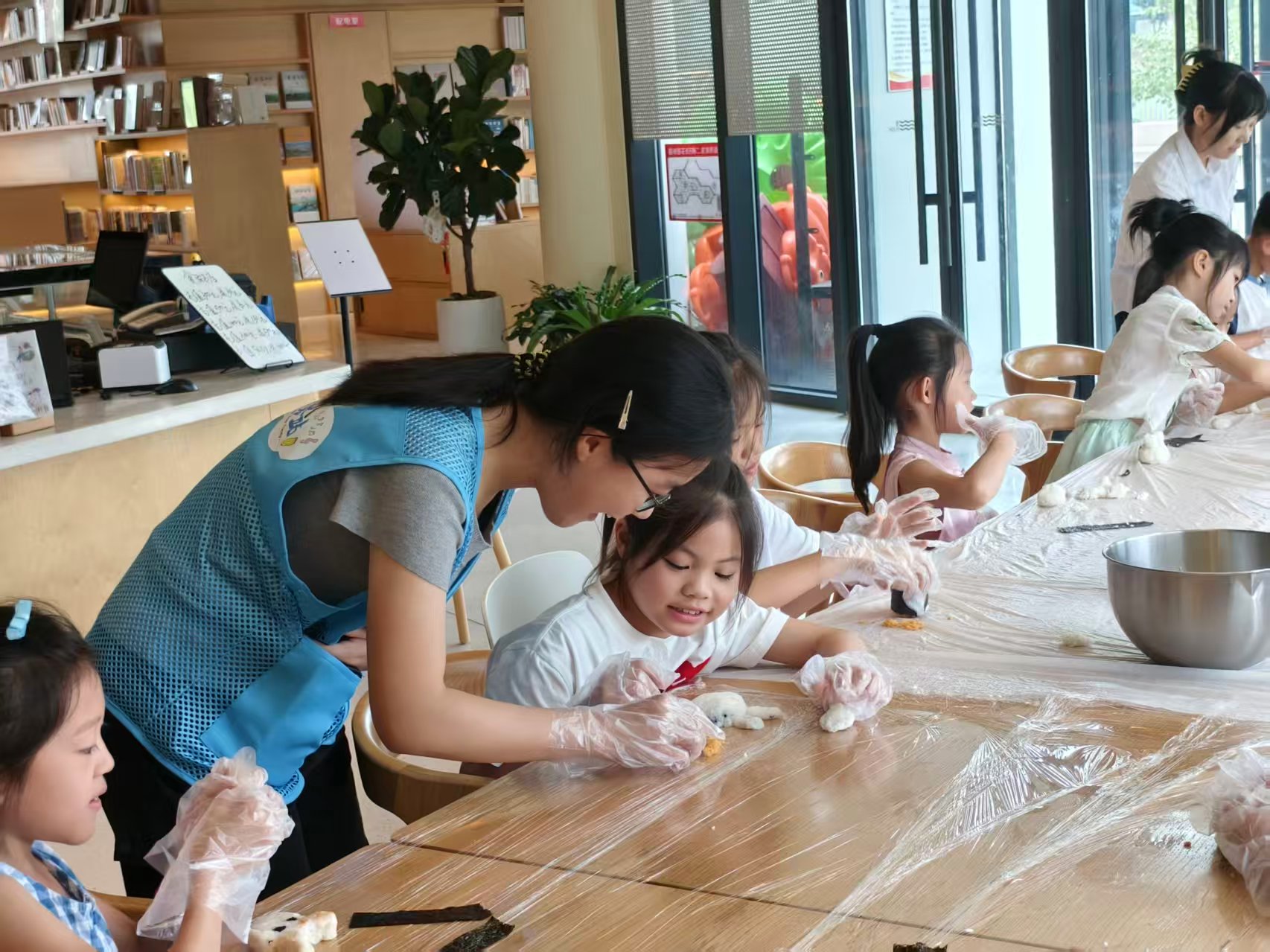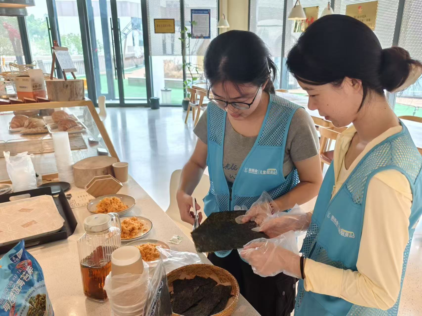 “京山橋米”主題實(shí)踐活動(dòng),作為荊門(mén)市雙職工家庭托管服務(wù)的重要環(huán)節(jié),旨在通過(guò)本地特色農(nóng)產(chǎn)品體驗(yàn),增強(qiáng)孩子們對(duì)區(qū)域文化的認(rèn)知,同時(shí)緩解暑期看護(hù)壓力。活動(dòng)現(xiàn)場(chǎng),身著統(tǒng)一藍(lán)色背心的志愿者早早完成布置:長(zhǎng)桌經(jīng)過(guò)嚴(yán)格消毒,整齊擺放著晶瑩剔透的京山橋米飯、剪裁好的紫菜片、金黃松軟的肉松、小勺、一次性手套等食材與工具。空氣中彌漫著淡淡的米香,營(yíng)造出溫馨而有序的實(shí)踐氛圍;顒(dòng)以湖北省地理標(biāo)志產(chǎn)品“京山橋米”為核心載體,通過(guò)沉浸式手工體驗(yàn),讓孩子們?cè)?ldquo;做中學(xué)、食中知”,不僅提升了動(dòng)手能力,更在潛移默化中增強(qiáng)了對(duì)家鄉(xiāng)文化的認(rèn)同感與自豪感;顒(dòng)伊始,志愿者通過(guò)圖文并茂的講解,向孩子們介紹了“京山橋米”的產(chǎn)地淵源、品質(zhì)特點(diǎn)與文化價(jià)值。隨后,志愿者現(xiàn)場(chǎng)示范飯團(tuán)制作流程:取適量溫?zé)崦罪垺伷阶喜、均勻撒入肉松、巧妙捏合成型。過(guò)程中,重點(diǎn)講解了京山橋米的軟糯特性如何提升飯團(tuán)的口感與塑形效果,并介紹了當(dāng)?shù)鼐用駛鹘y(tǒng)食用方式,如搭配時(shí)令蔬菜、制作米糕等,讓孩子們從“舌尖”感受鄉(xiāng)土風(fēng)情。在指導(dǎo)下,孩子們戴上一次性手套,圍坐長(zhǎng)桌,興致勃勃地開(kāi)啟動(dòng)手實(shí)踐。從最初的生疏到逐漸掌握力度與節(jié)奏,他們嘗試將米飯捏成圓形、三角形、愛(ài)心形甚至小動(dòng)物造型。對(duì)于手法不熟練、配料過(guò)多或塑形困難的孩子,志愿者逐一進(jìn)行示范和手把手指導(dǎo),幫助他們調(diào)整手法、規(guī)范操作,確保每位孩子都能獨(dú)立完成屬于自己的創(chuàng)意飯團(tuán)。“我做的飯團(tuán)像個(gè)小太陽(yáng)!”“我的是恐龍飯團(tuán)!”孩子們?cè)趧趧?dòng)中收獲快樂(lè),在分享中傳遞童真。經(jīng)過(guò)約30分鐘的專(zhuān)注制作,一盤(pán)盤(pán)形態(tài)各異、香氣撲鼻的飯團(tuán)作品陸續(xù)“出爐”。本次活動(dòng)全程聚焦基礎(chǔ)手工能力與生活技能的培養(yǎng),涵蓋手部精細(xì)動(dòng)作、空間感知、流程理解與食品安全意識(shí)等多個(gè)維度,有效提升了兒童的專(zhuān)注力、協(xié)調(diào)力與自信心。更重要的是,通過(guò)“可看、可做、可嘗”的多感官體驗(yàn),京山橋米這一地方優(yōu)質(zhì)農(nóng)產(chǎn)品的文化內(nèi)涵得以生動(dòng)傳遞,讓鄉(xiāng)土教育真正“落地生根”。