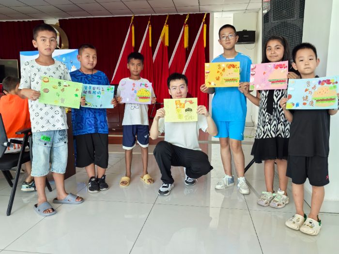 在伊寧市春風里社區“紅領巾小課堂”,團隊聚焦健康理念的早期培育,先向社區群眾科普健康飲食知識,隨后組織當地兒童共同繪制營養膳食手抄報。通過生動有趣的繪畫互動,隊員們引導孩子們在輕松氛圍中學習健康飲食知識,強化健康飲食觀念,助力養成良好生活方式,為全民健康素養提升播撒希望的種子。