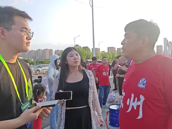 在徐州奧體中心賽前檢票處,實踐團成員與徐州漢風球迷會的觀賽隊伍相遇,并與會長展開交流。會長表示,民間足球正展現出機遇與挑戰并存的真實面貌。盡管當前聯賽仍面臨“認知門檻高”和“一票難求”等現實問題,但蘇超賽事已然帶動更多家庭走進球場,推動青訓發展,促進本土文化與體育融合。