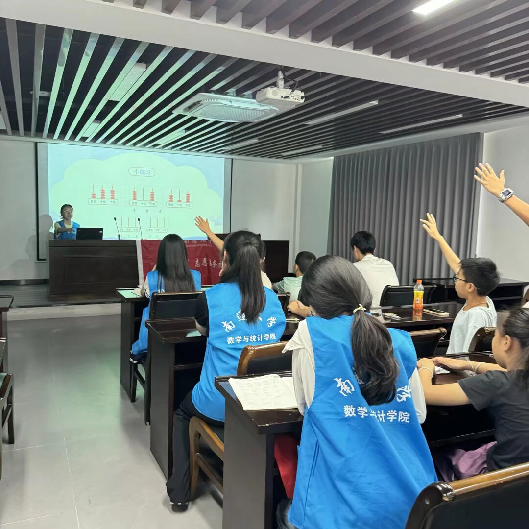 在這個熱情似火的夏天,南通大學數學與統計學院“樂學課堂”志愿服務團的成員們化身“知識播種者”,懷揣著滿腔熱忱走進南郊社區。他們不僅為小朋友們帶來了細致入微的功課輔導,更精心打造了一場趣味橫生的“數學小課堂”,讓數學不再是書本上枯燥的公式,而是變成了孩子們觸手可及的奇妙世界。