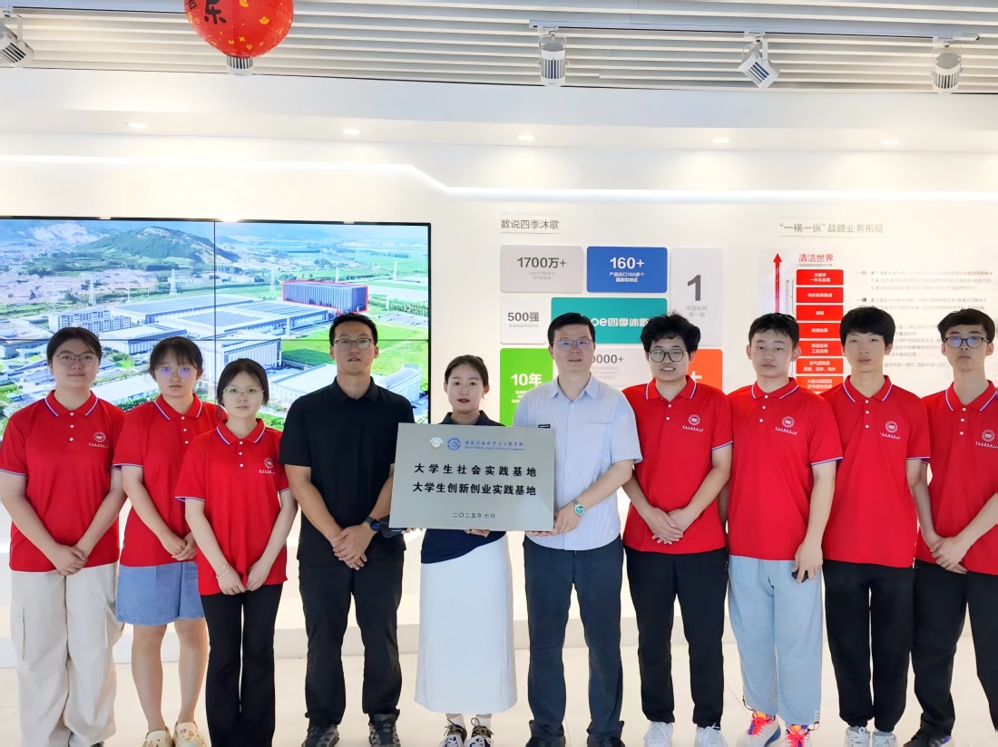 圖為實踐團與四季沐歌集團建立“大學生社會實踐基地”合影圖。趙佳豪 供圖