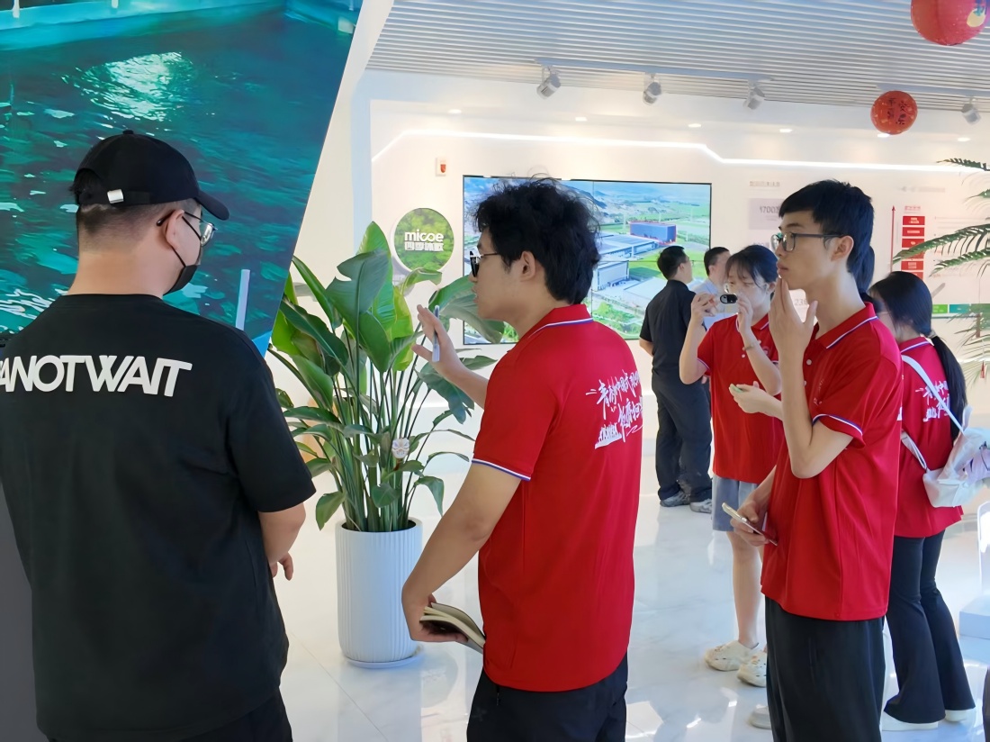 圖為實踐團成員與四季沐歌集團工作人員探討供暖器件知識。趙佳豪供圖