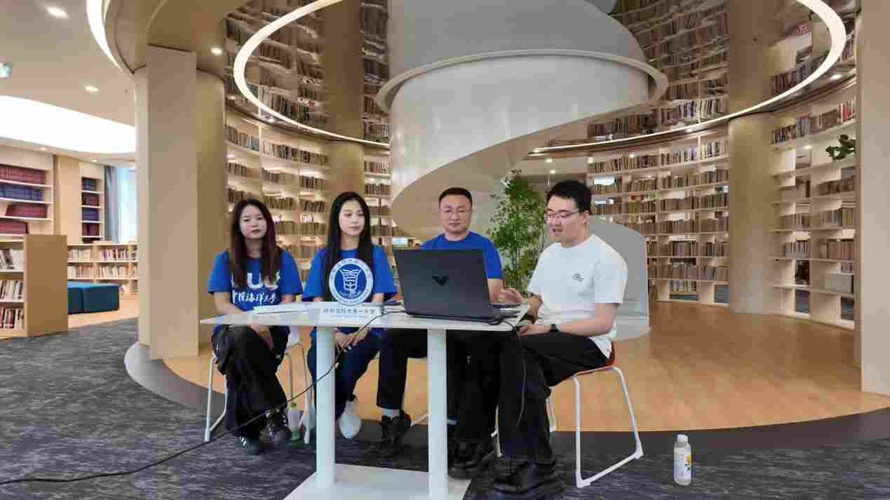當日中午,實踐隊轉至呼和浩特市第一中學。實踐隊員謝澤源、劉馨田化身“校園主播”,在呼市一中校園內開展直播,熱情介紹學校特色與海大學習生活點滴,帶大家“云游”海大,讓觀眾直觀感受海洋學府魅力,增進對海大的親切認知。下午,實踐隊帶來文藝匯演,并以趣味問答與知識競賽開展海洋科普,活動尾聲還舉行了捐書儀式。