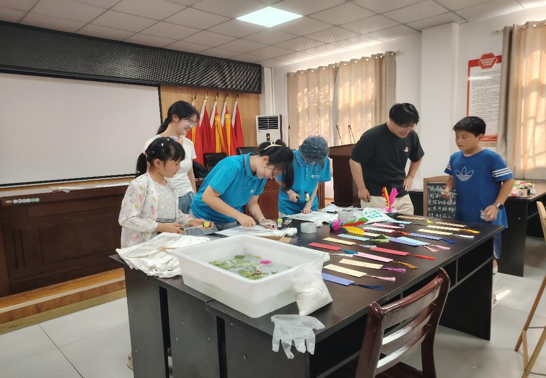 (圖為實(shí)踐團(tuán)成員幫助小朋友拓印 圖攝張海)