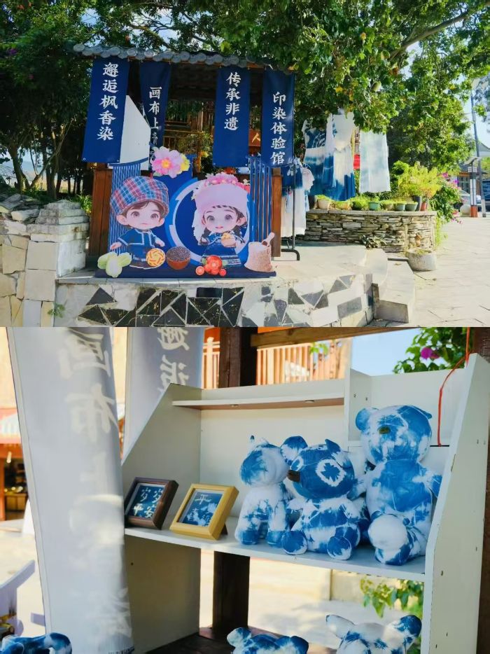 此次實(shí)踐,志愿隊(duì)還專(zhuān)程拜訪(fǎng)了兩位布依族楓香染非遺傳承人。據(jù)傳承人介紹,為響應(yīng)國(guó)家非遺保護(hù)與鄉(xiāng)村振興政策,積極選擇回歸家鄉(xiāng),在好花紅村設(shè)立非遺體驗(yàn)館與文創(chuàng)館,通過(guò)“線(xiàn)上+線(xiàn)下”結(jié)合的銷(xiāo)售模式推廣楓香染產(chǎn)品——既拓寬了經(jīng)濟(jì)增收渠道,也讓這項(xiàng)古老技藝走向更廣闊的舞臺(tái)。在文創(chuàng)館內(nèi),不僅有價(jià)值上千元、經(jīng)一針一線(xiàn)縫制的完整布依族服飾,還有融入現(xiàn)代審美設(shè)計(jì)的楓香染手提包、手機(jī)殼、玩偶等文創(chuàng)產(chǎn)品,傳統(tǒng)技藝與現(xiàn)代潮流碰撞出獨(dú)特魅力。