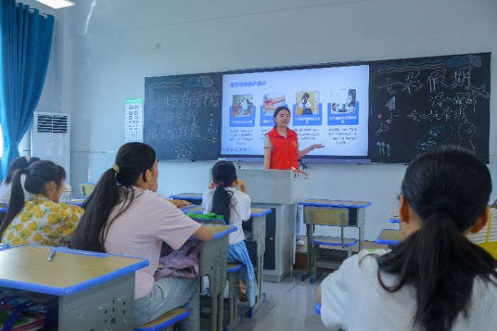 圖為志愿者協調家長簽署安全責任書 通訊網楊貝熙攝 流行病課上隊員們充分發揮醫學院校專業優勢,支教隊員們化身“健康宣傳員”,為孩子們帶來一堂生動實用的流行病防治課。圍繞夏季常見傳染病的傳播途徑與科學預防措施,隊員們通過情景模擬、互動問答、洗手步驟演示等形式,將復雜的醫學知識轉化為孩子們聽得懂、記得住的生活常識。一位隊員現場示范正確洗手步驟,孩子們紛紛伸出小手認真模仿,在“內外夾弓大立腕”的口訣中,良好的個人衛生習慣悄然存在孩子們心中。