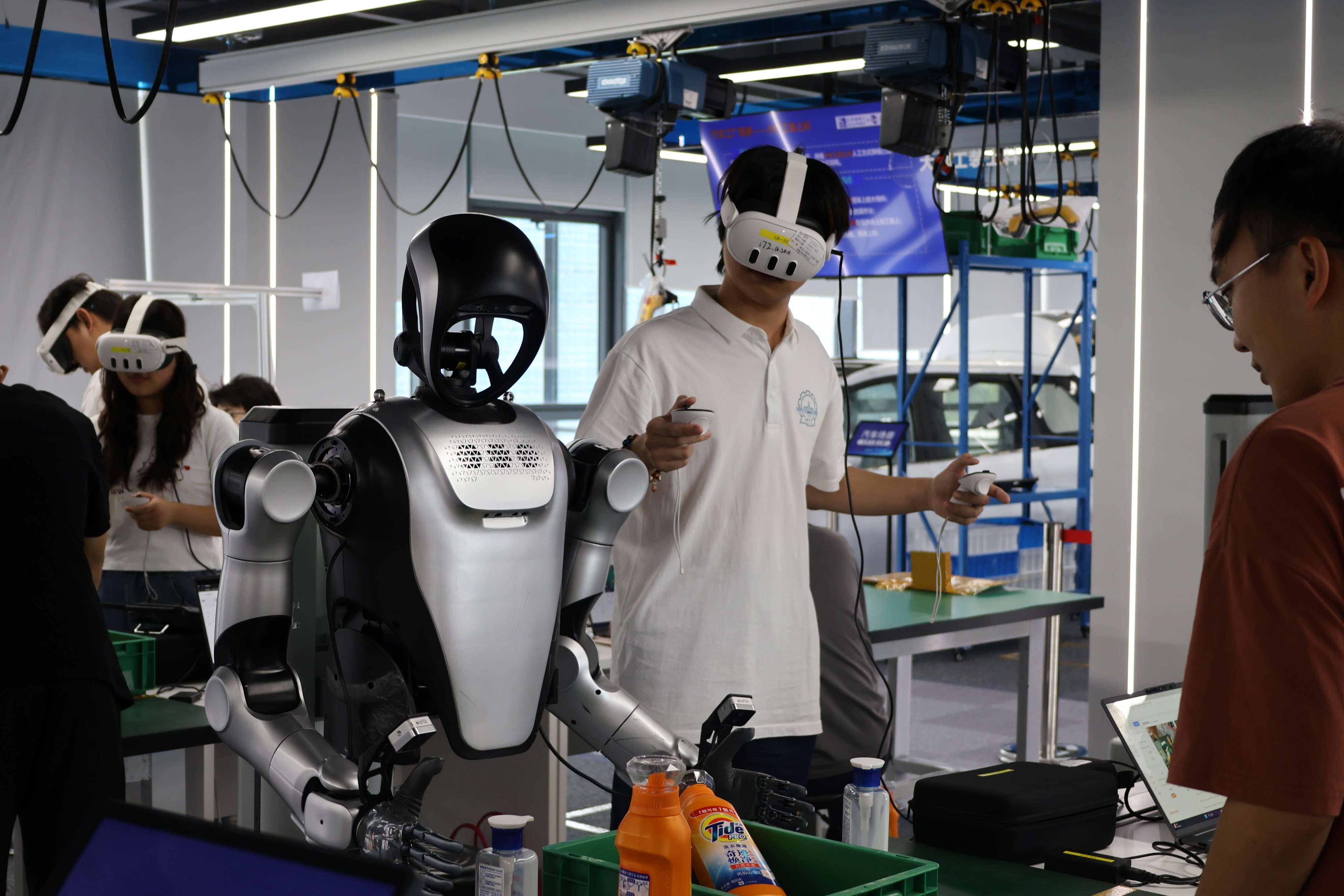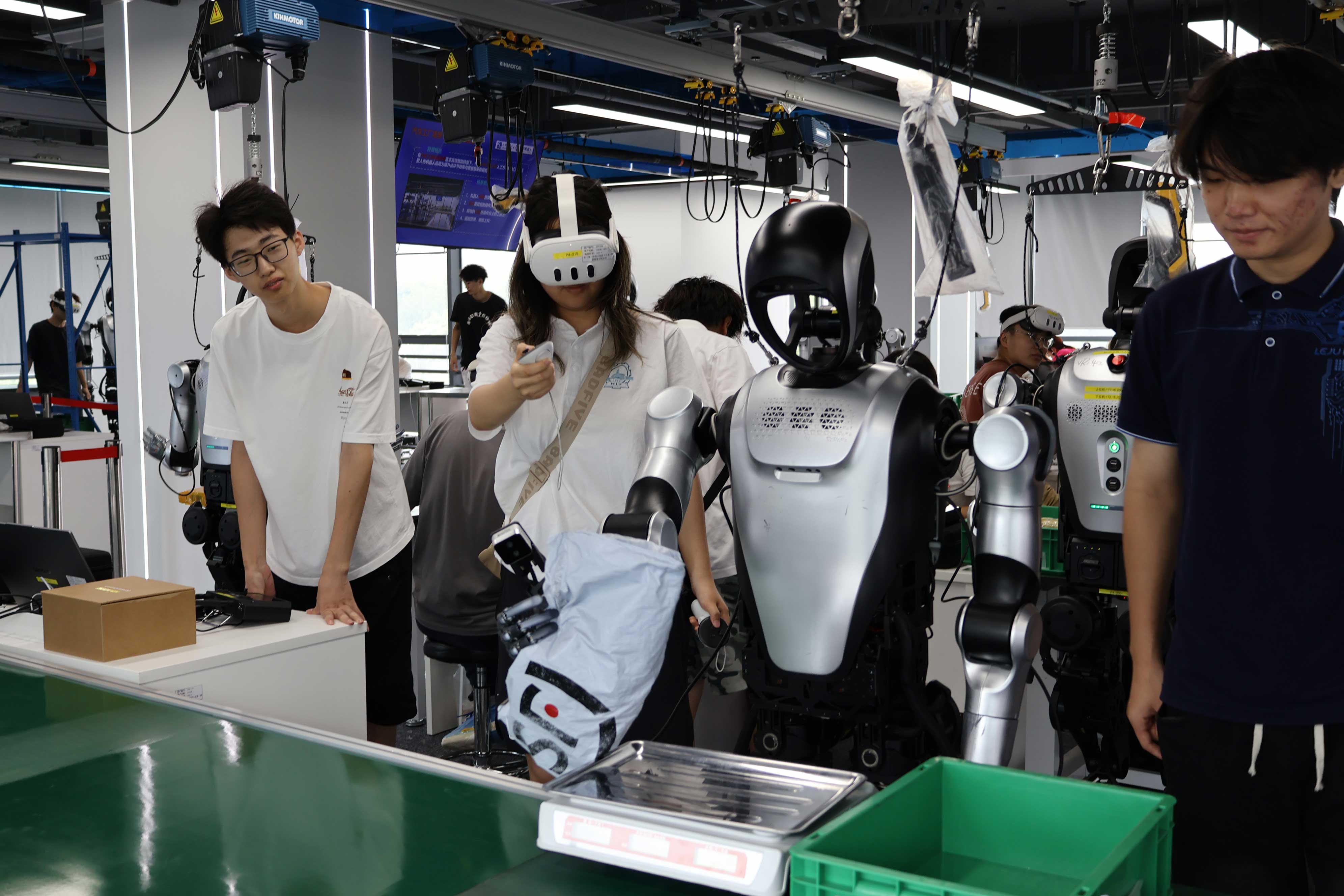 在動態人形機器人“阿布”的帶領下,實踐隊員們參觀了樂聚(蘇州)機器人技術股份有限公司的展廳,“阿布”向隊員們詳細講解了樂聚機器人的應用方向、服務領域和核心技術。樂聚機器人秉持著“精益求精,勇于創新”的工匠精神,在人形機器人這個一度被認為“遙不可及”的冷門賽道上堅持了近十年之久。自2016年公司成立起,到2023年“夸父”機器人發布,樂聚機器人持續攻克核心技術難關,推動人形機器人產業規模化發展,不斷通過科技創新進行技術破局,取得了卓越成就。此后,實踐隊員們在工作人員的指導下,親自上手體驗了AR技術賦能下“物料搬運”機器人的數據采集工作,實地感受著樂聚機器人對技術和產品的“精益求精”。