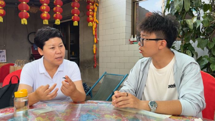 圖 2 實踐隊成員采訪村支書廖書記現場 祁明陽攝