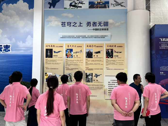 實踐團隊成員在航空科技館講解員的帶領下,有序參觀了館內(nèi)的航空歷史展區(qū)、航空裝備展區(qū)、航空實訓體驗區(qū)等多個功能區(qū)域。展區(qū)內(nèi),從早期的螺旋槳飛機模型到現(xiàn)代的噴氣式戰(zhàn)機仿真品,從航空發(fā)動機的核心部件到航天器的結構原理展示,一件件實物與模型系統(tǒng)呈現(xiàn)了中國航空工業(yè)從無到有、從弱到強的發(fā)展軌跡。講解員結合歷史背景,詳細講述了新中國航空事業(yè)在艱苦條件下攻堅克難的奮斗故事,特別是老一輩航空人懷揣“航空報國”初心,隱姓埋名、自主創(chuàng)新的感人事跡,讓團隊成員深刻體會到“忠誠奉獻、逐夢藍天”的航空報國精神。