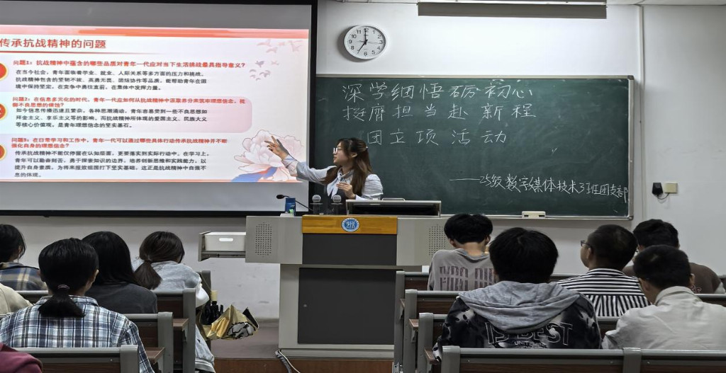 當講述者聲音真摯地講述抗戰歷史場景時,教室內一片寂靜。那些曾經停留在歷史課本上的文字,此刻變成了鮮活的畫面、滾燙的情感,與腳下這片土地緊緊相連。宣講后的討論環節,《習近平與大學生朋友們》中的論述成為思想碰撞的火花。團支部書記的話語擲地有聲:“薩師俊艦長用生命詮釋‘軍人天職’,胡文虎先生用行動踐行‘家國大義’,正如習近平總書記所說‘志存高遠,腳踏實地’,我們的愛國,應是學好專業知識,讓個人理想融入國家發展的洪流。” 這場宣講,不僅是歷史的回望,更是信仰的傳承。