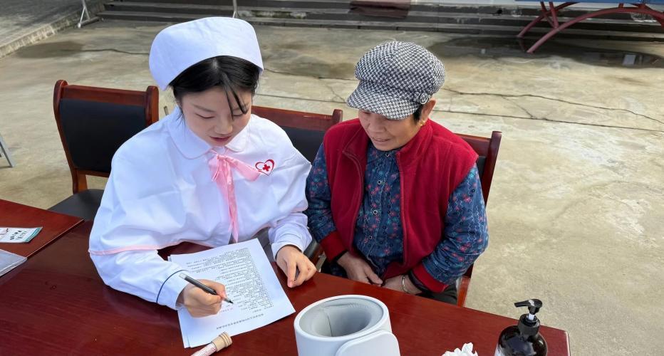 • 健康咨詢區:隊員用方言解讀護理手冊,講解高血壓、關節炎等常見病的日常護理知識,同時為老人測量血壓、記錄健康數據,方便后續跟蹤。