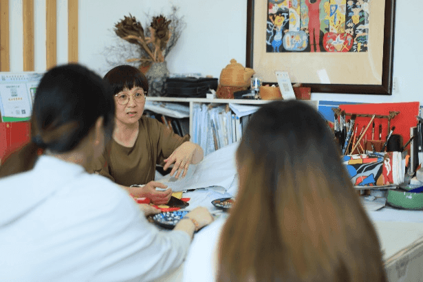 交流過后我們發現漁民畫衍生品銷售途徑其實并不多,網上銷售是很好的途徑,但是日常生活中知且對漁民畫感興趣并會在網上進行購買的是少數人,而鄭紅飛老師的衍生品的宣傳主要還是依靠學生和漁民畫愛好者個人推廣介紹較多,也會有景點和民宿的裝飾推廣,將漁民畫與各方面合作,分工協作進行創作加工,雖然收入不多,但是能夠把愛好當工作,把愛好變現,更能夠促使創作者的創作激情迸發,也有利于吸引愛好者前來學習傳承。