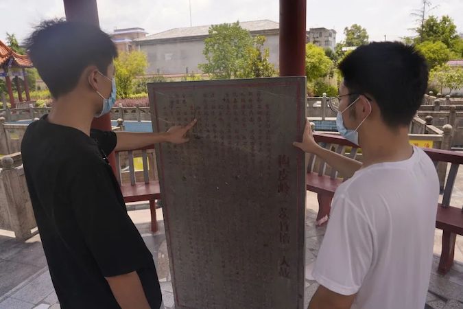 參觀到戰斗戰役展示區,厚重的歷史氣息撲面而來。五個亭子臨于水上,分別紀念紅軍在來鳳境內舉行的構皮嶺大戰、胡家溝阻擊戰、官渡口反擊戰、卯洞河岸攻堅戰、老鴉關大戰等五個戰役,一亭居中,其余四亭分布四周,呈眾星拱月之勢。觀仰區是為紀念來鳳籍或在來鳳縣工作的老紅軍所建的紀念碑亭。老紅軍在戰爭年代九死一生,立下赫赫戰功,解放后又在各級領導崗位上兢兢業業,嘔心瀝血,為建設社會主義再立新功。最后,團隊來到墓區,墓區主要安葬團級以上紅軍指揮員烈士遺骨。陵墓為長方體,弧形頂蓋,墓前有碑,陵寢前有生平事跡介紹。