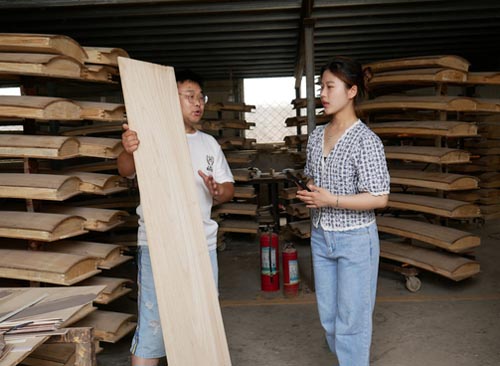 隨后,團(tuán)隊(duì)成員來到了樂器生產(chǎn)的原材料庫房。走進(jìn)庫房,一股中藥的清香就彌散在空氣中,工廠老板告訴團(tuán)隊(duì)成員,為了讓樂器能夠擁有更好的質(zhì)感,他們在以桐木為生產(chǎn)原材料的基礎(chǔ)上,特意添加了珍貴的中藥木材。在和老板的交流過程中,團(tuán)隊(duì)成員更是了解到,堌陽音樂小鎮(zhèn)所制造的民族樂器內(nèi)部,均附帶有一張宣紙,紙上標(biāo)注了每件樂器的生產(chǎn)日期和古詩句……這些細(xì)節(jié),無不是工匠精神的體現(xiàn)。
