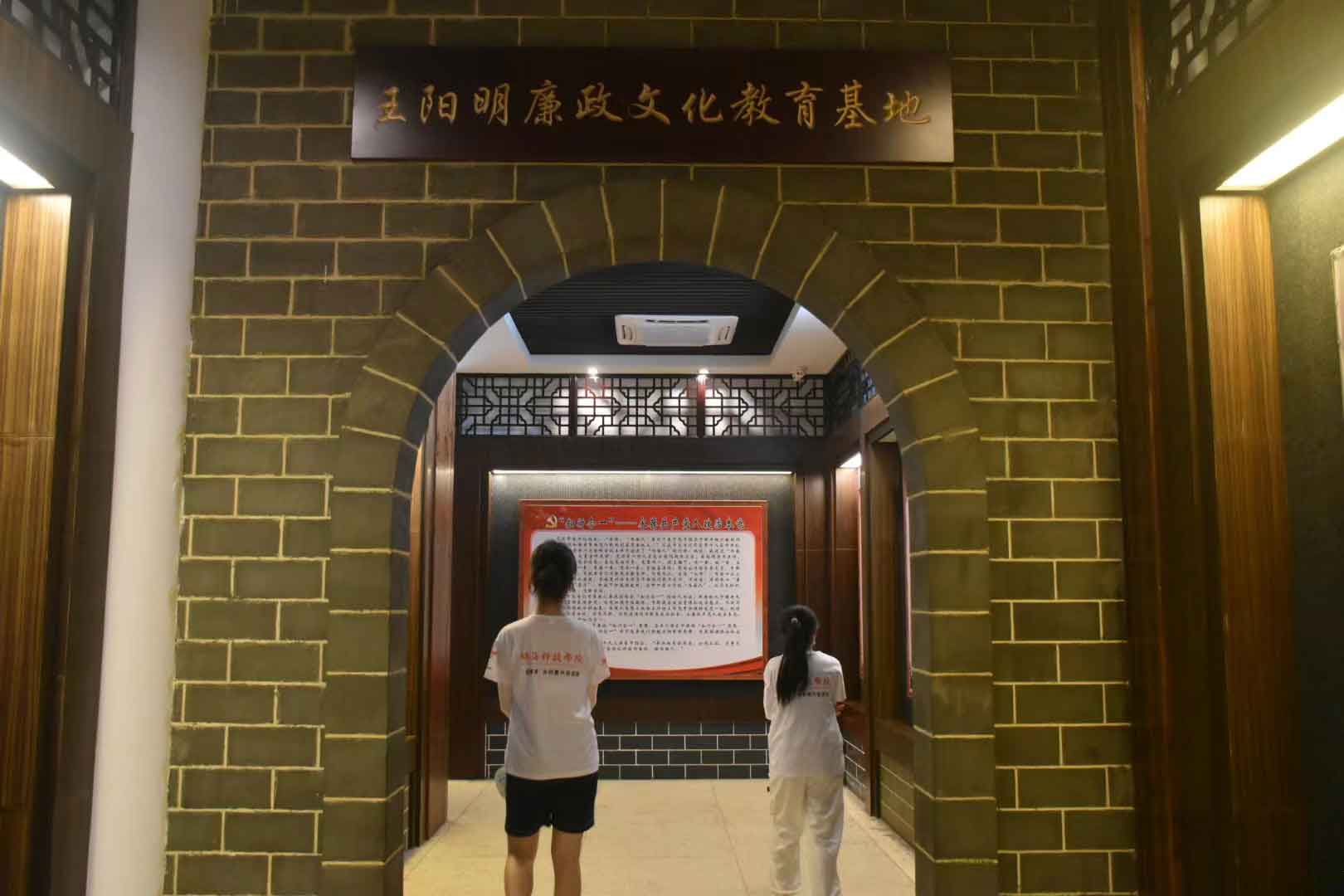 穿過陽明修心園,實踐團來到陽明博物館,首先參觀的是王陽明廉政文化教育基地,基地通過知行合一、勤政親民、剛直不阿、省察克治、清心廉潔的五個篇章,利用圖文、書畫、雕塑、文物等載體,清晰有序地展現了王陽明先生的心學理念。在這里,實踐團成員看到了王陽明先生他視官事如家事,惜民財如己財;修改官衙堂前“肅靜,回避”等冷酷無情的標語,緩解了“官的威嚴,民之輕賤”的緊張關系等等事跡,在學習這些事跡中,實踐團成員不斷地塑造出了王陽明先生勤政親民、剛直不阿、清心廉潔的鮮明形象。在若干事跡中,王陽明先生提出的省察克治理念對今天的黨員干部加強自律提高修養仍具有重要的借鑒意義,可見,陽明先生的貢獻不僅對當時產生了重大的影響,對后世也是影響深遠。除此之外,實踐團成員還發現,王陽明先生不僅取得了高遠的理學成就為世人所敬仰,他的詩書造詣也十分精湛,其楷書沉著剛勁,端莊高雅,行書神采蒼秀,筆勢縱逸。草書筆意清新,瘦勁堅挺。讓實踐團成員進一步認識到,王陽明先生是這樣一位把軍事、政治、哲學、詩詞、文章、教育、書法藝術等才華集于一身、匯高尚精神貴品質為一體的明代心學大師。