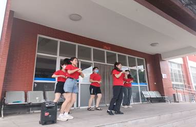 在課下或娛樂時間,隊員們會給特殊兒童表演才藝,比如舞蹈唱歌……特殊兒童的特殊之處并不是完全一樣的,但是音樂旋律是一種通用的語言,它能在不同國界不同文化背景的地方生生不息,它帶給孩子們的快樂與享受也是如此。臺上實踐團隊的成員們隨著音樂蹦蹦跳跳,活力四射,臺下的孩子們歡呼鼓掌,興高采烈。這不就是最好的證明嗎?