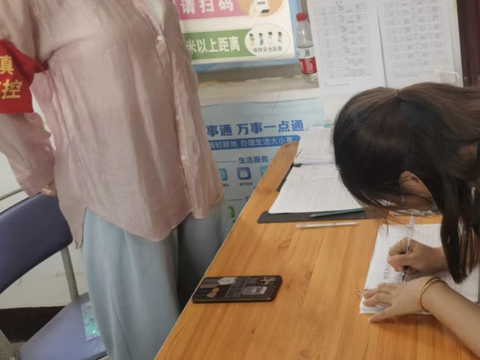 團隊成員繆熠羽在社區登記返鄉人員信息,她根據無為縣市區外地來返蕪人員摸排信息表,依次詢問對方是否返蕪、返蕪時間以及返蕪后的居住地并記錄,這種看似簡單的工作,卻考驗了工作的細心、耐心和嚴謹程度;成員丁佳儀在社區核酸檢測點維持秩序、掃描健康碼、協助群眾順利進行核酸檢測;成員孫絲雨跟隨社區人員來到村莊中清理山堆、來到田間完成土地資源調查工作。往日里,我們只知道社區人員關照我們生活的大事小情,卻不知他們的工作是如此的繁瑣和不易,這不禁讓我們對社區人員多了一份理解和敬佩。