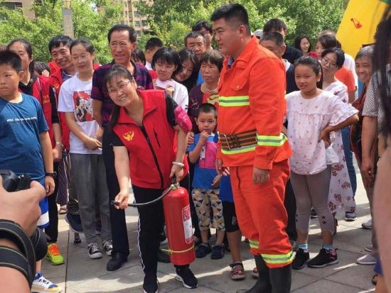 為了增強消防安全意識和增強提高火災(zāi)等災(zāi)難中的自保能力,讓居民學(xué)到有關(guān)的安全當(dāng)戶知識,達(dá)到自我保護(hù)的目的,社區(qū)組織了消防演練活動。曲阜師范大學(xué)“星火傳遞,攜夢同行”社會實踐隊成員在煙臺某社區(qū)積極作為志愿者參與其中。