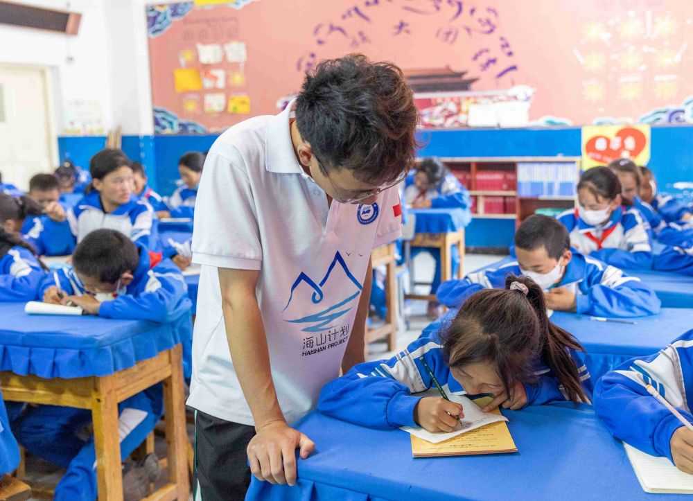 圖為實踐隊員指導學生寫作。(通訊員:吳駿豪)