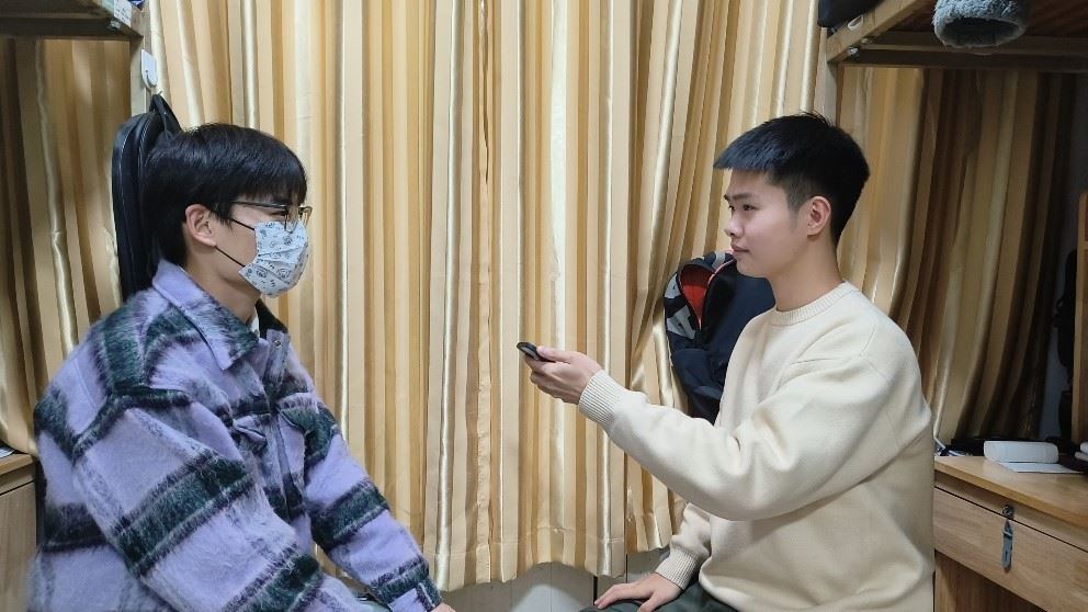 圖為小隊(duì)成員(右)采訪棗莊當(dāng)?shù)赝瑢W(xué)(左)