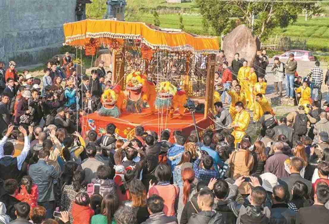 線獅又名九獅圖,起源于清代,主要分布在浙江省臺州市仙居縣內,是當地具有民族代表性的一種慶祝節日的體育雜技表演。1月七日,曲阜師范大學“杏壇春雨入鄉土,犁牛勤耕承鄉髓”調研實踐小組到達仙居縣,進一步了解所謂的線獅。實踐隊隊員首先詢問了當地的居民,發現大部分居民對于線獅都很熟悉。實踐隊隊員了解到,線獅一般會在重陽節,元宵節的時候在廣場,廟會之類的地方表演,來表演的有些事專業的舞蹈團,但更多時候是社區里一些大爺大叔自發組織的舞獅團,免費給大家演出,表演不說有多好,主要是圖一個開心熱鬧。實踐隊隊員還從一些“懂行”的居民口中得知,線獅還有一種叫法叫做“顛獅子”,表演的時候不僅獅子的身子動的十分靈活,而且獅子的爪子,眼睛和耳朵也會不停的動,如果表演的技術過關,整個獅子看起來當真是活靈活現。