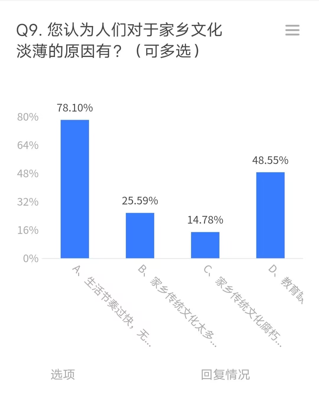 在采訪和調查結束后,實踐隊隊員對采訪和調查結果進行了反思和總結。在調查中,絕大部分人們認為地區的文化建設不到位,覆蓋面不夠廣。雖然存在儒家文化的宣揚,但主動性不高、傳播效應不夠。實踐隊隊員認為加強儒家文化和家鄉文化傳播與推廣工作任重而道遠,這需要基層自治組織在日常中多進行相關工作的開展,同時要做到從群眾中來,到群眾中去,身體力行到社區中進行普通話的推廣和宣傳,而相關文化推廣工作的重點目標,是社區中的年輕人,要注重加強對青年群體的宣傳力度,同時也要適時對中老年進行相關的講解。