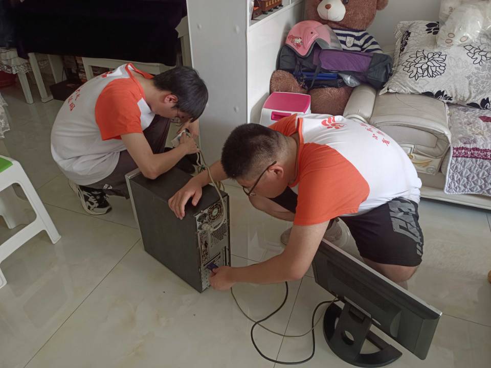圖為技術組成員修理老舊電腦 安徽師范大學 韋玉婷 攝