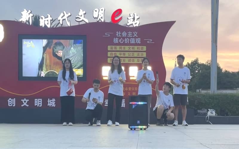 經過快板和相聲節目的熱場,四位普法志愿者以在中國民間廣泛流傳并受到廣大群眾喜愛和歡迎的傳統民間表演形式——三句半,接著進行了普法宣傳。三句半以簡短、生動、形象的語言,表達出深刻的道理和意義,普法志愿者通過三句半進行普法宣傳,可以提高群眾的法律意識和法律素質,讓他們更加清楚地認識到法律的重要性和意義。同時,三句半也可以增強群眾的文化素養和藝術水平,讓大家更加熱愛我們的傳統文化,并潛移默化的感受法制熏陶。最后,一首普法改編歌曲《紅豆》將現場推向了高潮,呼吁大家要尊重法律、遵守法律、維護法律。