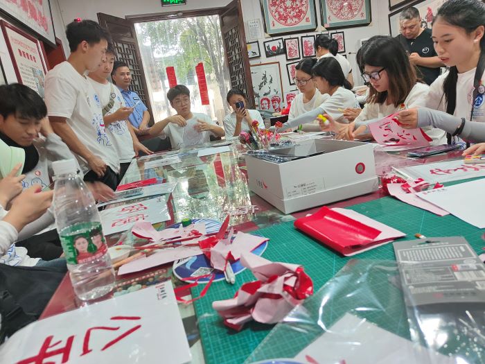 驕陽似火,不減非遺傳承人的熱情,剪紙館管理員邀請“三公”志愿團一同參與剪紙,通過動手來感悟剪紙文化。描線、裁剪,一幅幅凝結新時代法治精神的作品在“三公”志愿團手中誕生,抽象的“法”在“三公”志愿團一雙雙巧手中變得看得見、摸得著,讓抽象的“法”通過剪紙,道出新時代法治生活新篇章。“三公”志愿團借助剪紙傳達法治觀念,實現非遺與普法的雙向奔赴。