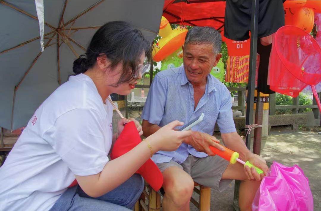 圖為實踐隊在宣傳防溺水知識。通訊員袁子蕙 攝 7月1日下午,實踐隊來到了茶山大慶寺河道邊對當?shù)鼐用襁M行了防溺水問卷調(diào)查與科普宣傳。在調(diào)查過程中,調(diào)研組發(fā)現(xiàn)盡管河道邊已經(jīng)貼上了“水深危險,禁止游泳”的警示牌,但仍有不少家長帶著孩子在河道里游泳嬉戲,對警示牌選擇“熟視無睹”,調(diào)研組同學因此紛紛上前進行了提醒,并對防溺水相關(guān)知識進行了普及。 調(diào)研隊員在對一位六十歲左右的居民進行防溺水相關(guān)知識的采訪時,他給出了這樣的回復:“我沒有進行過系統(tǒng)的防溺水教育。”這也從側(cè)面告訴調(diào)研組,過去對于防溺水的重視程度與教育普及程度遠不如近年,防溺水教育也仍存在缺陷與漏洞,還需進一步普及才能實現(xiàn)全民教育。