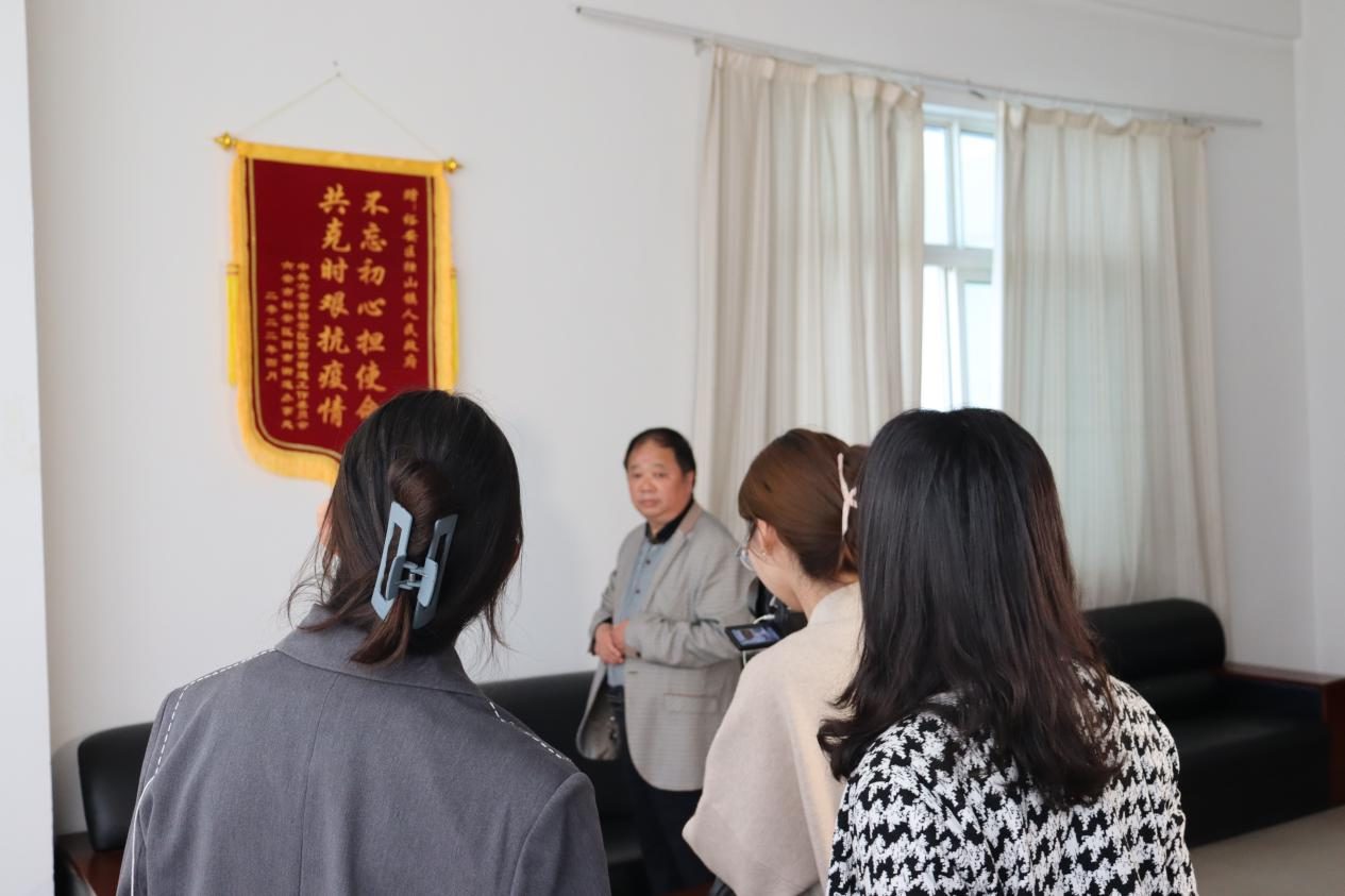 吳干才烈士后代吳家俊講述了吳干才烈士是如何兢兢業業的將青春奉獻給革命事業,最后又是如何壯烈犧牲,講到真摯之處,不由得黯然。但是,當同學們問向墻上的錦旗時,他驕傲的介紹:“疫情之后,我們單位獲得的。在有疫情的時候,我想我的祖父都不怕犧牲,我有什么好怕的呢?一定要沖在前面!”