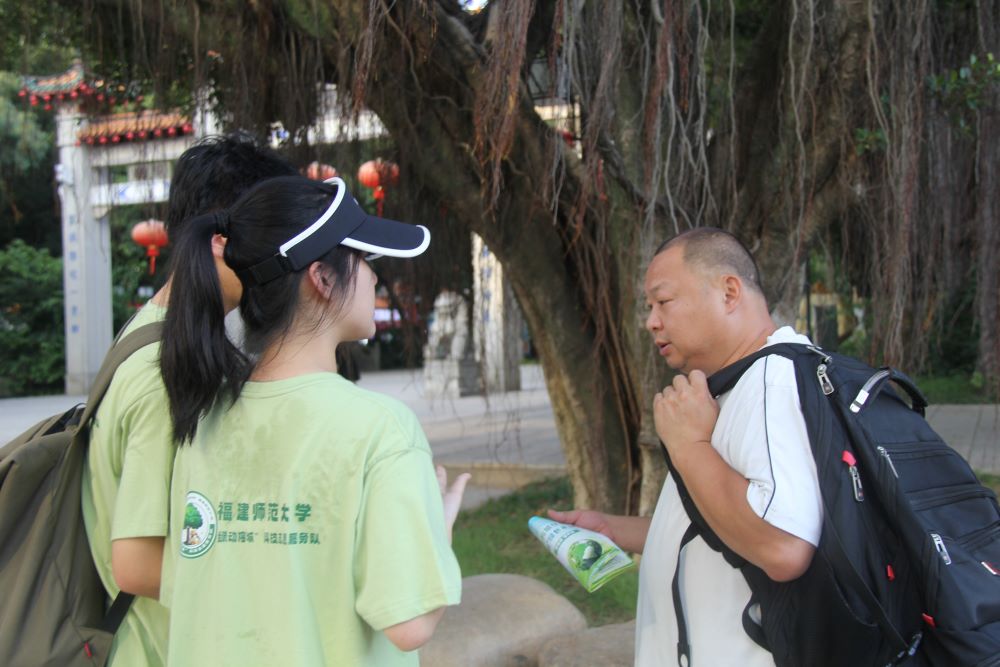 實踐隊隊員們首先通過對風景區垃圾分類狀況、垃圾桶區域數量的調研,初步了解了鼓山風景區垃圾分類現狀,為后期的宣傳行動進行知識儲備。同時,實踐隊員沿途撿拾鼓山垃圾,以身作則,向周圍游客宣傳環保意識。