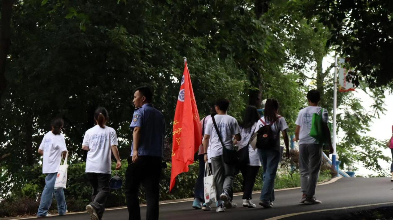 志愿服務(wù)團(tuán)沿茶溪村村道參觀(吳旺姣 攝)