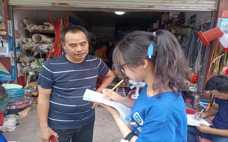 志愿團公共管理專業學生在進行問卷調研(胡佳欣 攝)