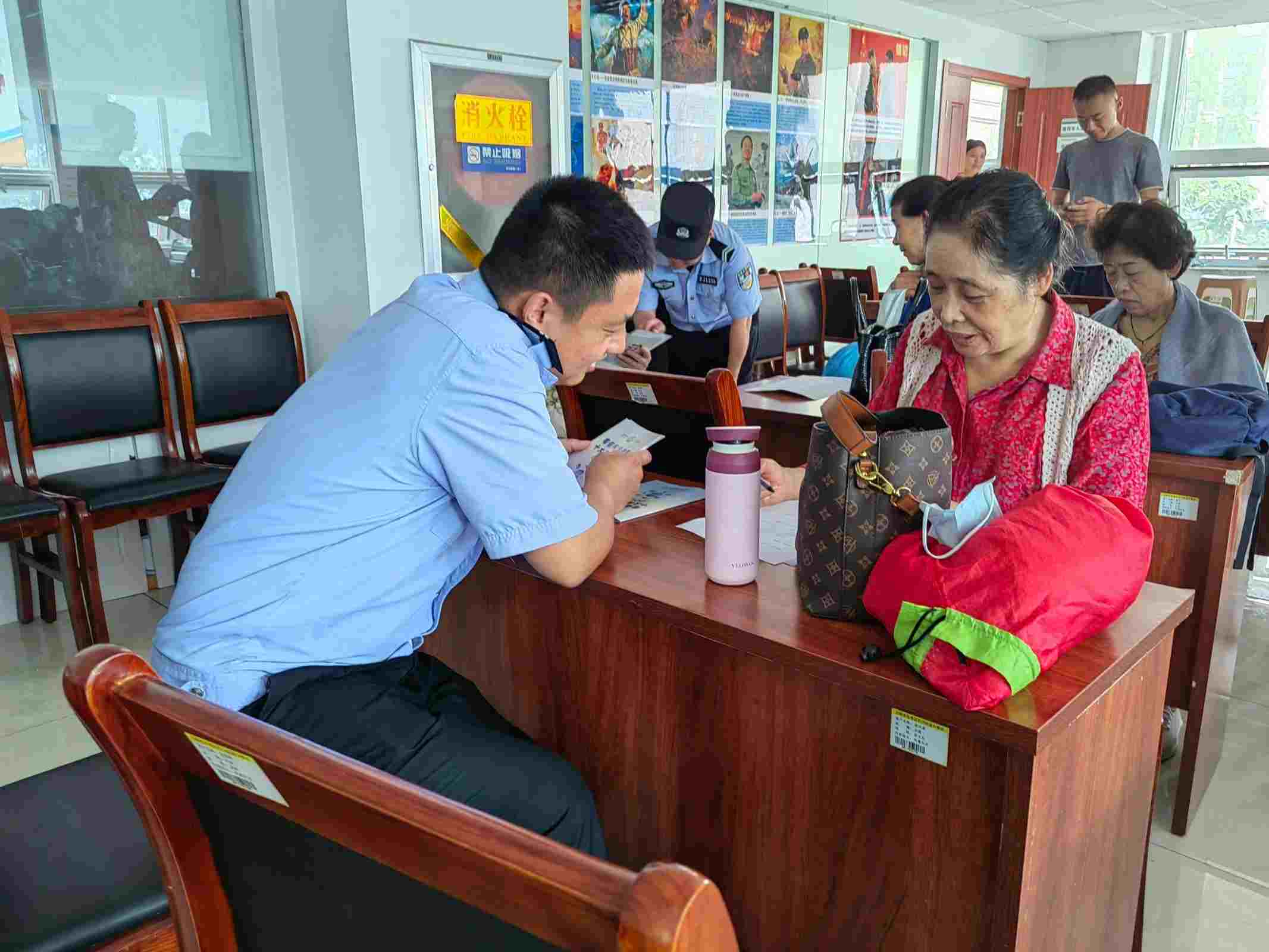此外,實踐隊邀請到石臼街道公安局的合作,共同對老年人進行反詐騙指導。同時,實踐隊成員配合石臼街道公安在街道附近發放宣傳頁和宣傳冊。宣傳反詐知識,增強宣傳力度,讓越來越多的人們尤其是老年人時刻將防詐騙牢記于心,外化于行。越多人參與,越多人舉報,就會形成一張越來越密實的"防護網",讓詐騙分子找不到可乘之機。因此,反詐騙要真正進入新的全民防騙時代,不僅僅需要技術的升級,更需要公眾"觀念"的升級。