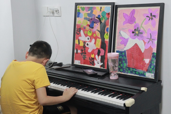 圖為星寶彈鋼琴。多彩大學(xué)生網(wǎng) 通訊員 黃怡 攝