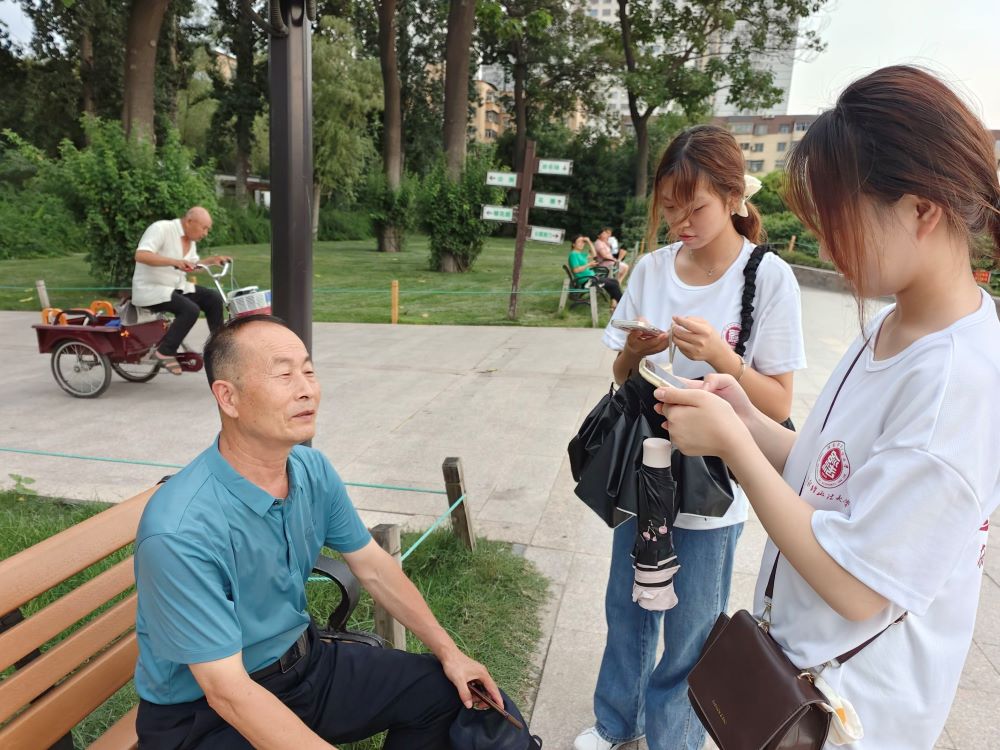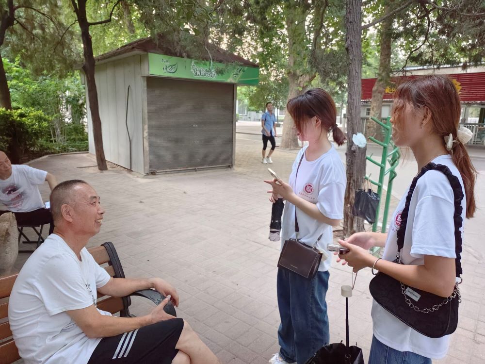 2023年7月10日,河南財經政法大學暑期實踐團隊“關愛新老人,助夕陽再晨”暑期實踐團隊在鄭州市人民公園中積極采訪新老人,調研社會再參與。