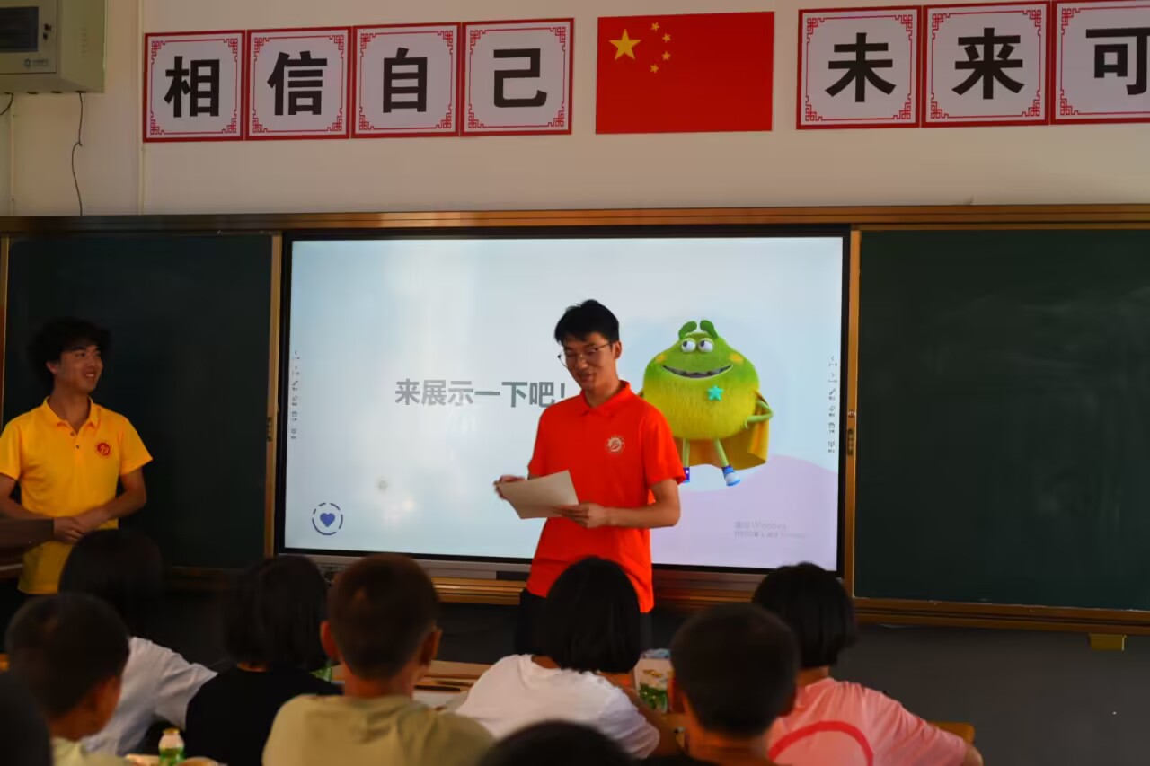 圖為“緣善”社會實踐隊隊員楊英豪與望程學校同學們開展關于“自我”的話題討論。通訊員 朱廣林 攝
