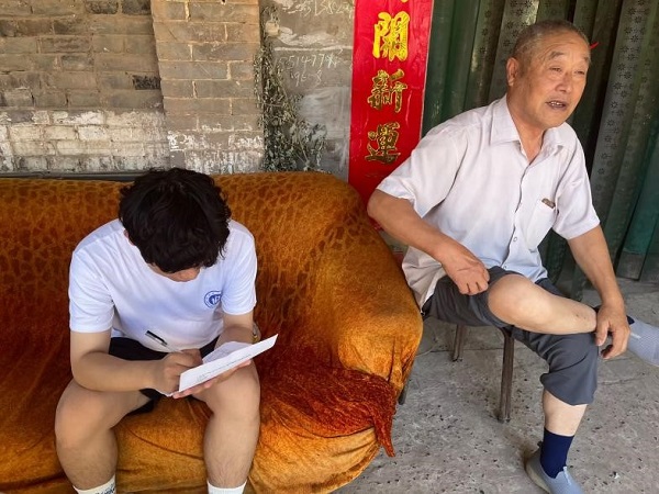 圖為團隊成員劉金陽向當地老人了解公共設施建設問題。通訊員 柴岷坤 攝