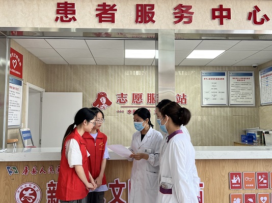 圖為實踐隊隊員在房縣人民醫院幫助人們尋醫問診。通訊員 胡欣怡 攝