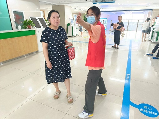 圖為實踐隊隊員為患者指引方向。 楚漢青年志愿服務隊隊員 徐昕怡 供圖