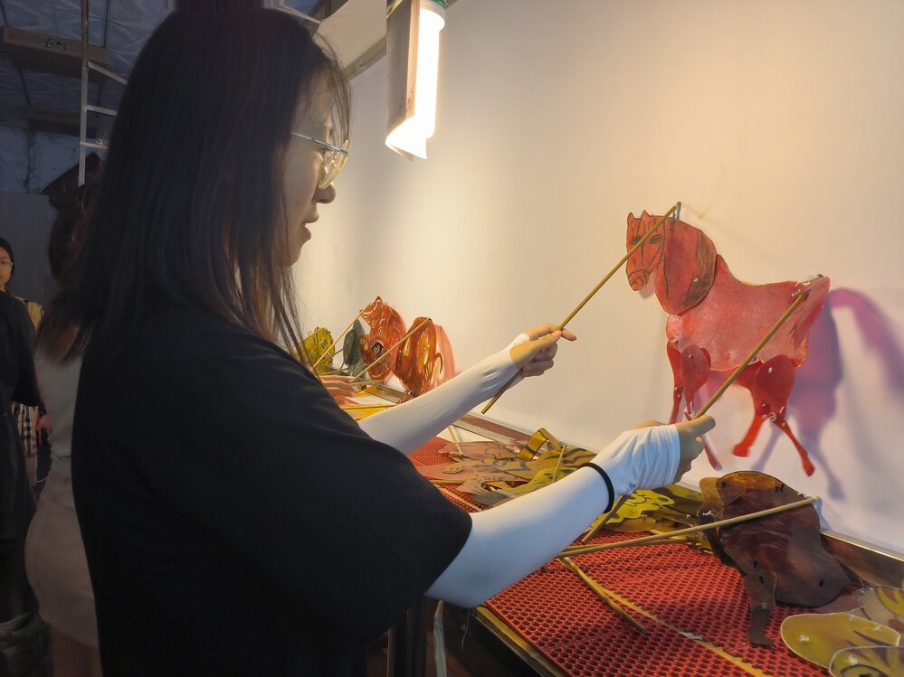 (成員體驗(yàn)皮影戲,王嘉儀攝)