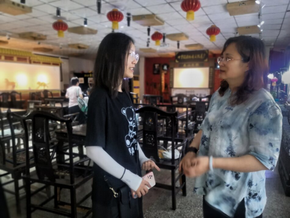 (實(shí)踐隊(duì)成員與演員進(jìn)行訪問,王嘉儀攝)