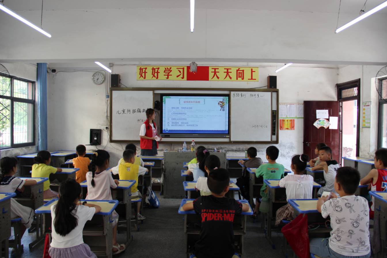 青春逢盛世,努力正當(dāng)時(shí),黨的十八大以來(lái),越來(lái)越多的大學(xué)生扎根基層教書(shū)育人,為廣袤土地帶去無(wú)盡生命力。兒童是祖國(guó)的花朵,國(guó)家的未來(lái),隨著現(xiàn)代交通的發(fā)達(dá),兒童被拐現(xiàn)狀愈加頻繁,加強(qiáng)兒童防拐騙教育迫在眉睫。2023年7月12日,湖北醫(yī)藥學(xué)院“醫(yī)路童行”暑期社會(huì)實(shí)踐團(tuán)隊(duì)于十堰市鄖陽(yáng)區(qū)胡家營(yíng)鎮(zhèn)中心小學(xué)開(kāi)展兒童自我保護(hù)-兒童防拐騙專(zhuān)題教育課程。增強(qiáng)兒童防范意識(shí),讓孩子們深刻認(rèn)識(shí)到防范意識(shí)的重要性,增強(qiáng)自我保護(hù)意識(shí)。