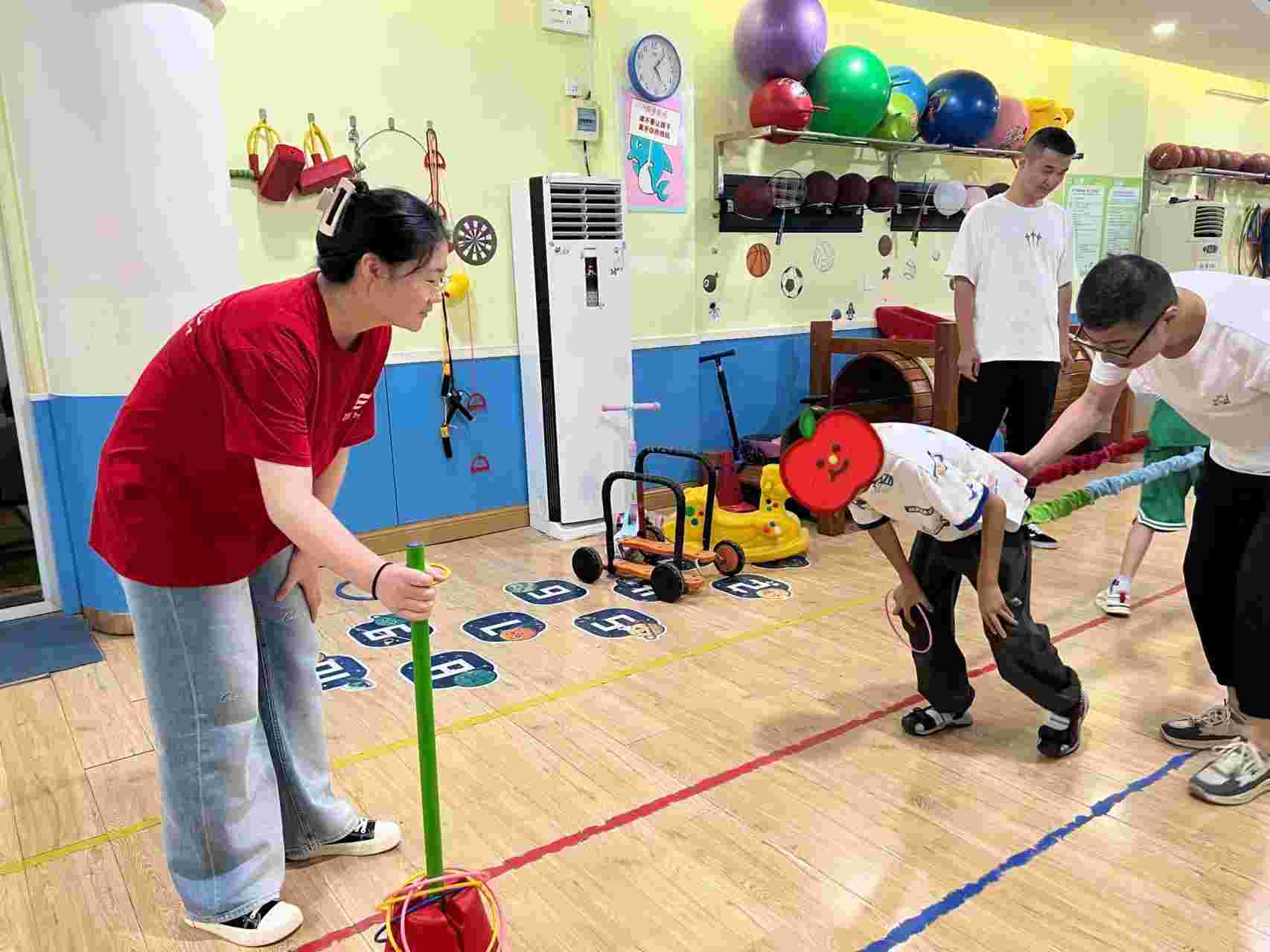 在感統(tǒng)課程中,志愿者們跟隨著老師一起帶領(lǐng)“星星”兒童們進(jìn)行體感訓(xùn)練;孩子們在上課過程中有時會情緒低落甚至哭泣但他們依然會完成老師交給他們的任務(wù)。在潛移默化中志愿者也與孩子們建立起友誼。