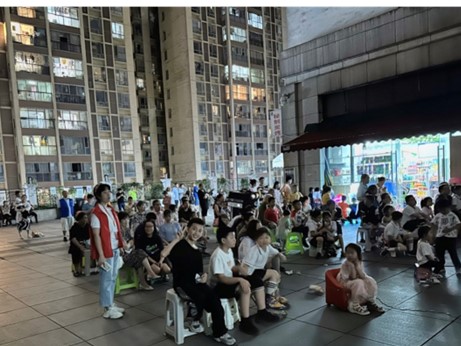 在放映開始前,現(xiàn)場就已是人聲鼎沸,熒幕后放映員正專心工作為觀眾呈現(xiàn)最佳光影,熒幕前觀眾們則一邊閑話家常分享休閑趣事,一邊樂享光影感受文化新風(fēng),更有孩子們穿梭其間建嬉笑成群,好不熱鬧。幕布搭起,光影閃爍,在炎熱的仲夏夜,微涼的夜風(fēng)中,一臺小小的放映機投射出的是一幀幀屬于主角的人生光影,留下的卻是一幕幕屬于觀眾們的幸福時光。而這也正是露天放映的魅力所在,一方露天廣場,一卷白色幕布,聚攏的是煙火,散開的是人情,煥醒的是文化。
