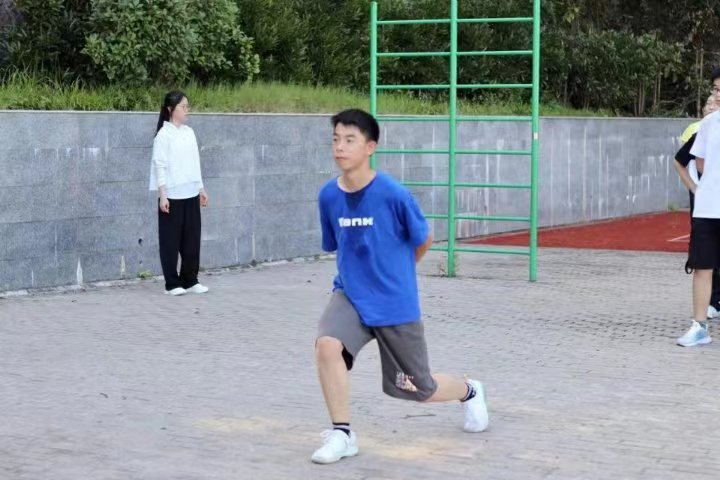 支教第二天,教學組薛雨軒老師早早趕到教室,今天同學們要進行的是物理知識的學習。薛雨軒老師先用科學小故事引導同學們對物理產生興趣,循序漸進的講解生活中的物理現象,然后再轉而學習書本中由前輩們總結出來的物理概念和規律,最后通過例題講解使同學們對力學的理解更加透徹。課堂上,同學們的神情認真而專注,一步一步進入物理科學的世界。下午,在金牛中學高中部的空地上,由張馨月和吳心怡兩位老師帶領,同學們開始了舞蹈基礎動作的學習,抬手、轉頭、屈腿、旋轉……他們對待每一個動作都無比認真,指導老師也耐心地調整著同學們的動作。