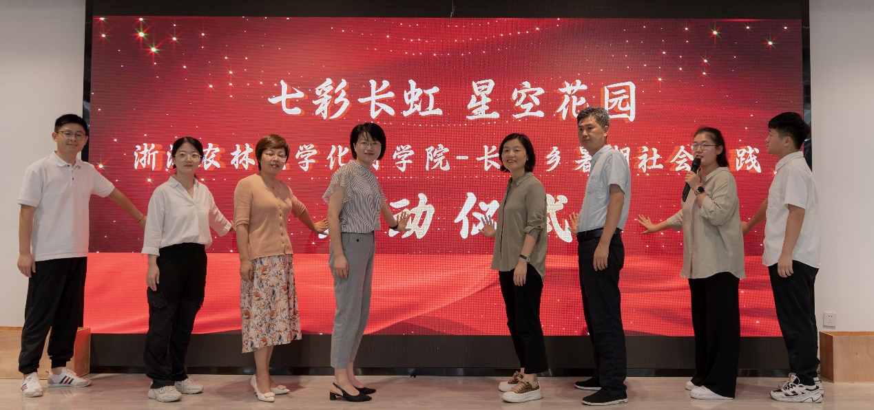 7月12日下午,浙江農(nóng)林大學化學與材料工程學院長虹鄉(xiāng)暑期社會實踐啟動儀式在衢州市開化縣長虹鄉(xiāng)人民政府成功舉行。長虹鄉(xiāng)黨委書記許穎、副鄉(xiāng)長周志峰,化材學院黨委副書記宋春春、家具設計與工程專業(yè)教授余肖紅、家具設計與工程專業(yè)教師王雪、學院輔導員章健、長虹鄉(xiāng)“七彩看點”代表以及實踐團成員18人參與了本次啟動儀式。會議由副鄉(xiāng)長余鄭惠斯主持。