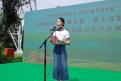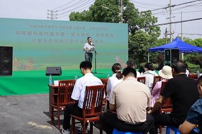 為深入學習貫徹習近平新時代中國特色社會主義思想,認真貫徹落實黨中央關于全面推進鄉村振興的決策部署, 2023年6月28日上午,泰州市海陵區蘇陳鎮雙岸社區舉辦蘇陳鎮雙岸村播節啟動儀式暨蘇陳鎮雙岸紅農產品直播大集市。其中一項重要環節為,南京師范大學泰州學院人文傳媒學院團總支書記查振芹和雙岸社區黨總支書記張愛軍共同簽訂“助力鄉村振興、實現中國式現代化”志愿服務協議并進行授牌儀式。